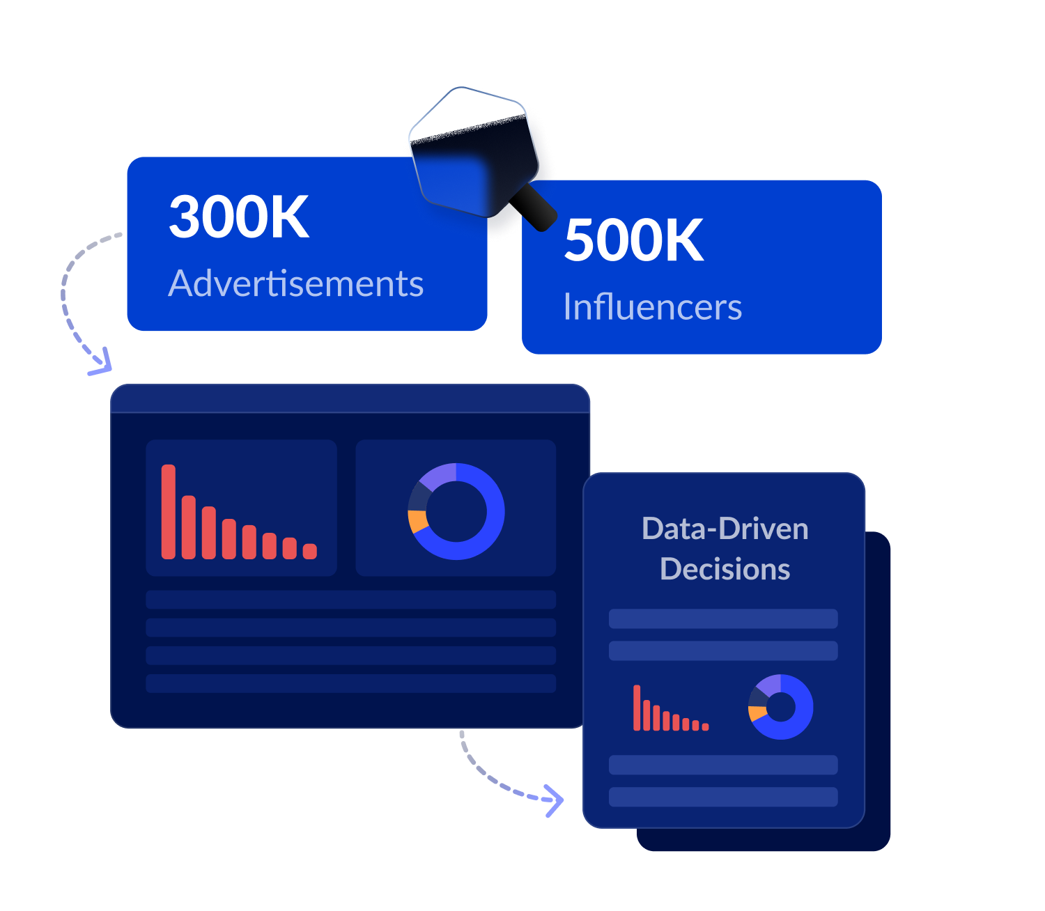 Gain a competitive advantage with AI-powered market and competitor intelligence, built on the analysis of over 300K advertisements, 500K influencer profiles, and 2M videos.